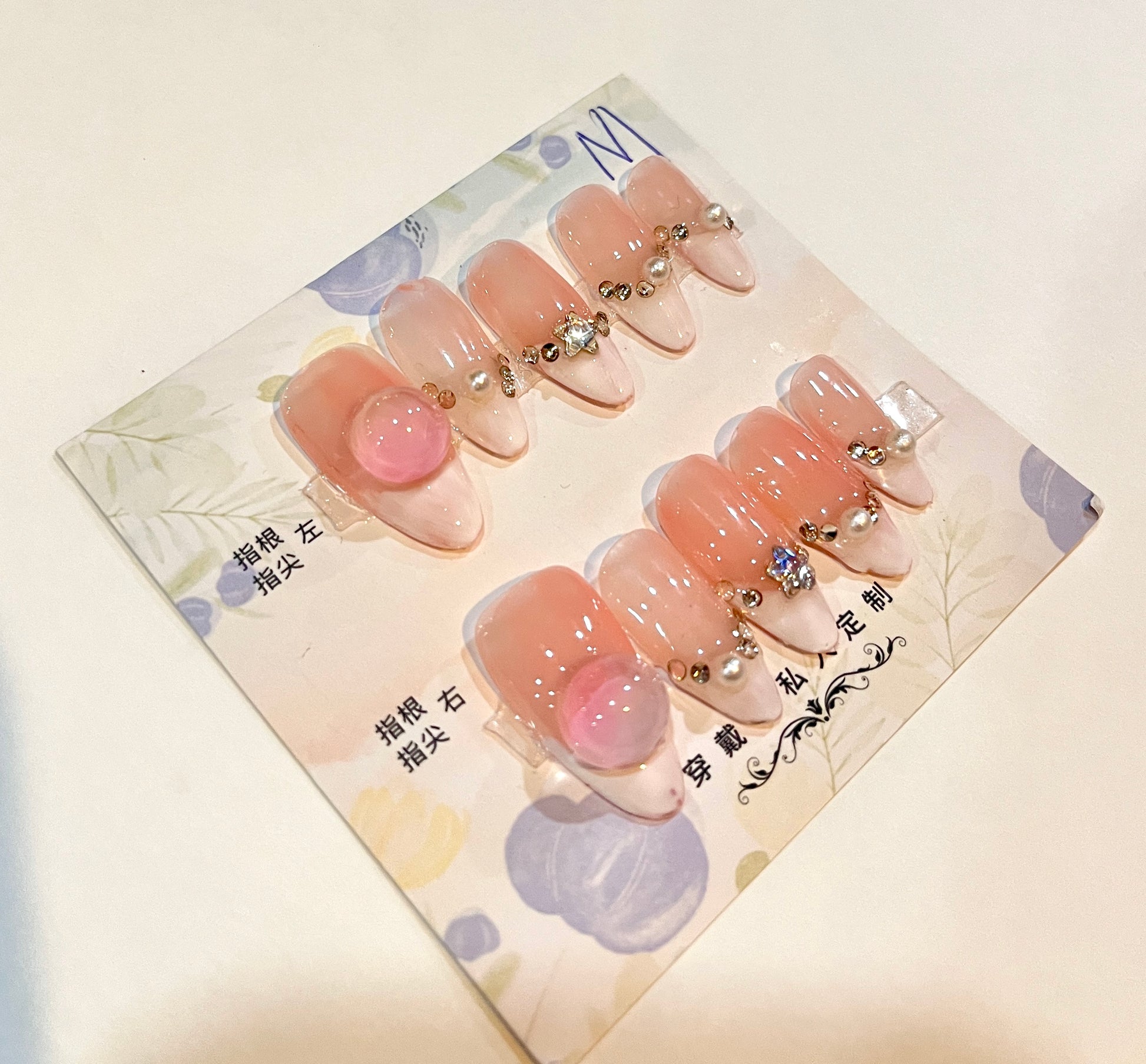 Elegant Pearl Gradient Press-On Nails – Pink & White 3D Charm Design