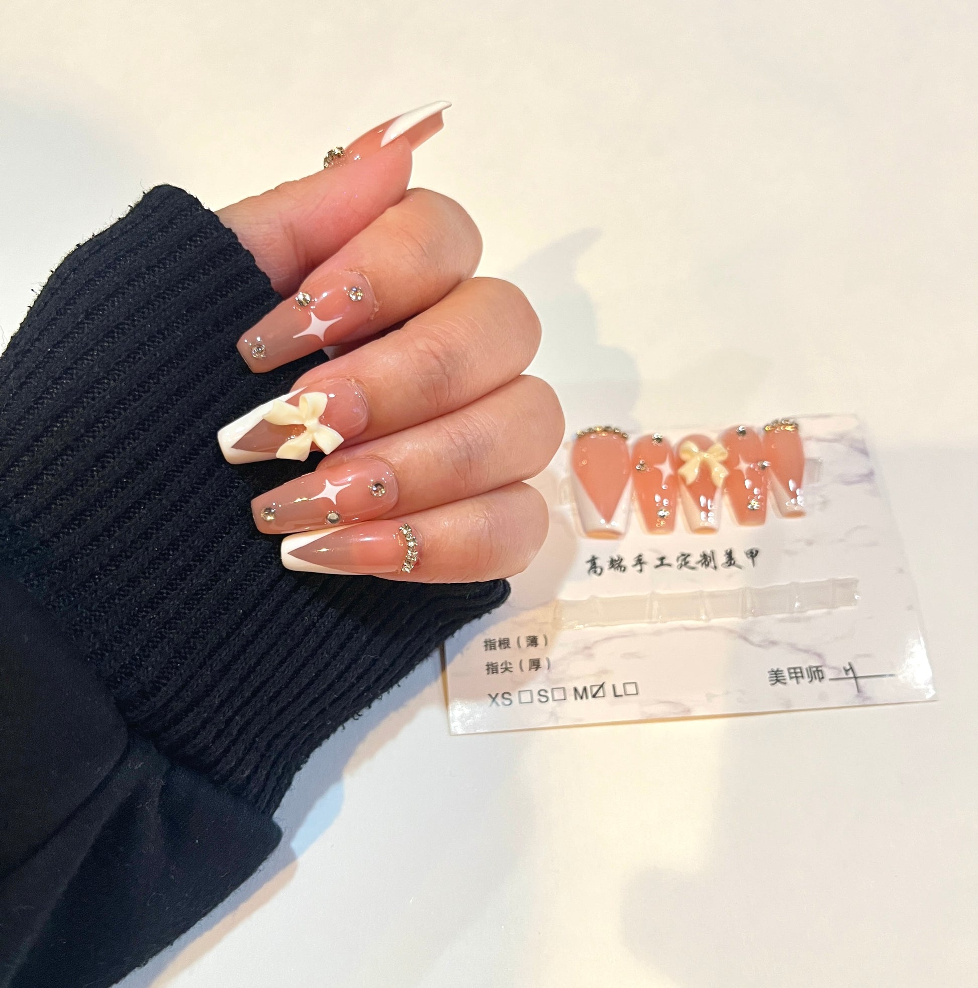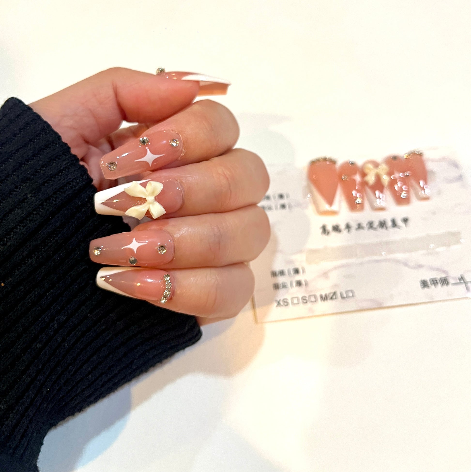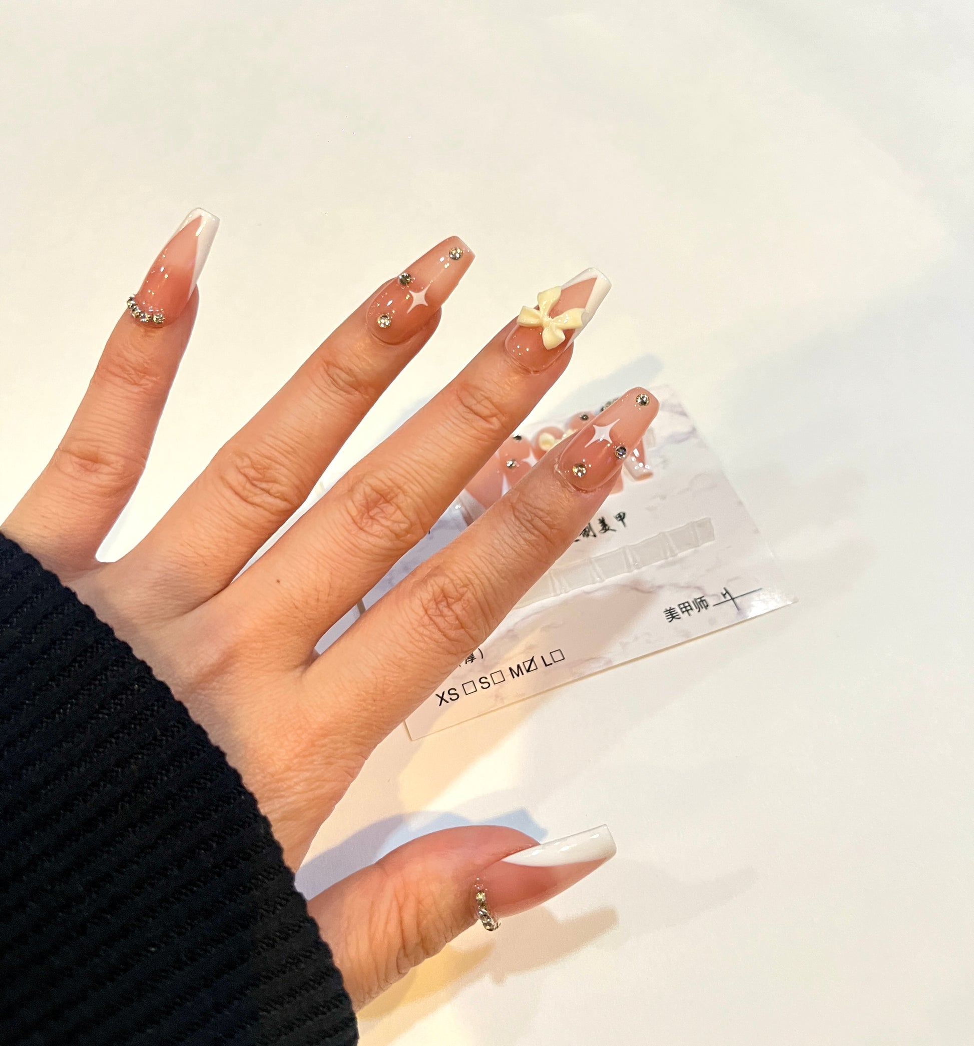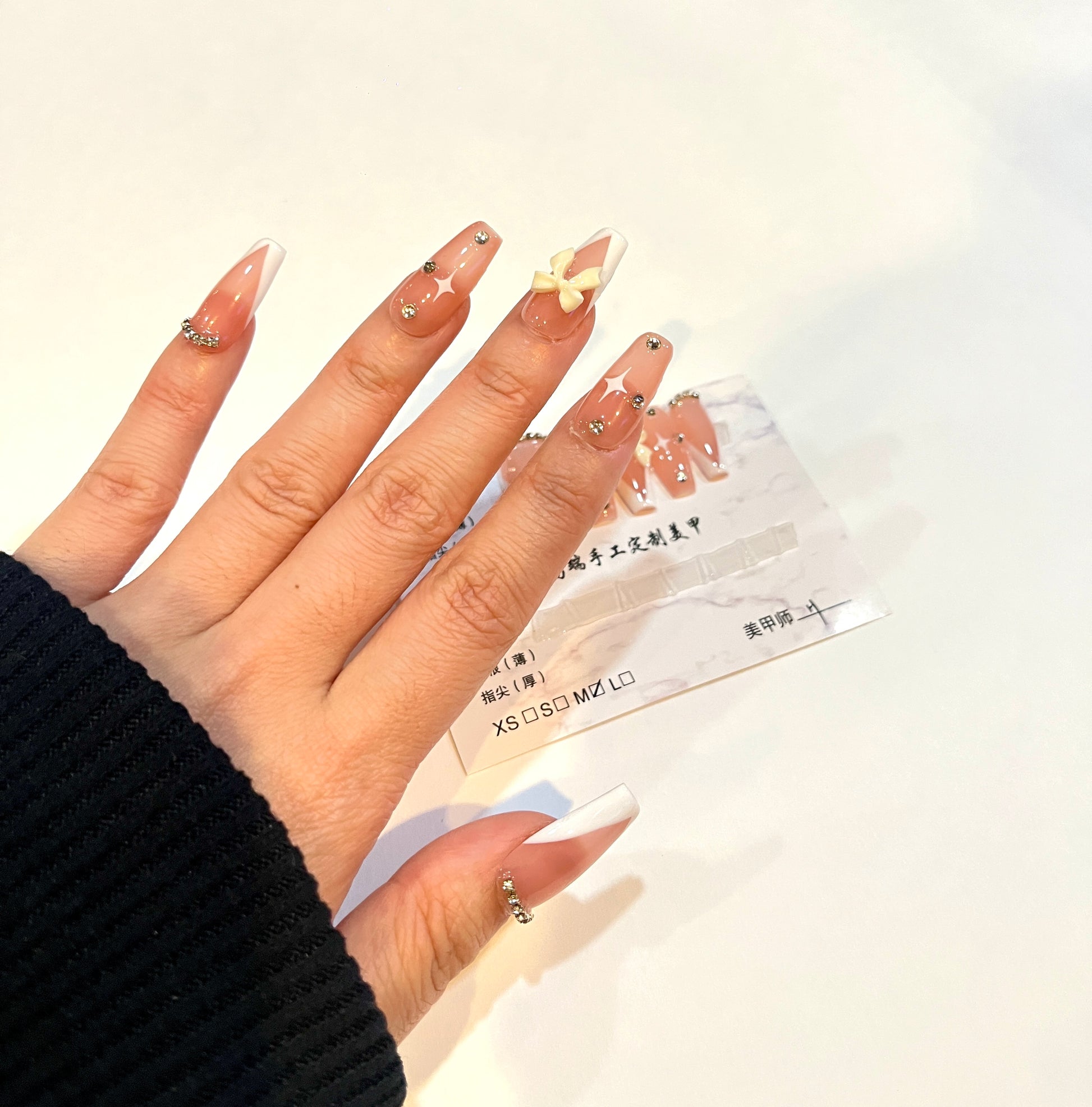 French Tip Bow – Medium Square Shape with Rhinestones (Size M)