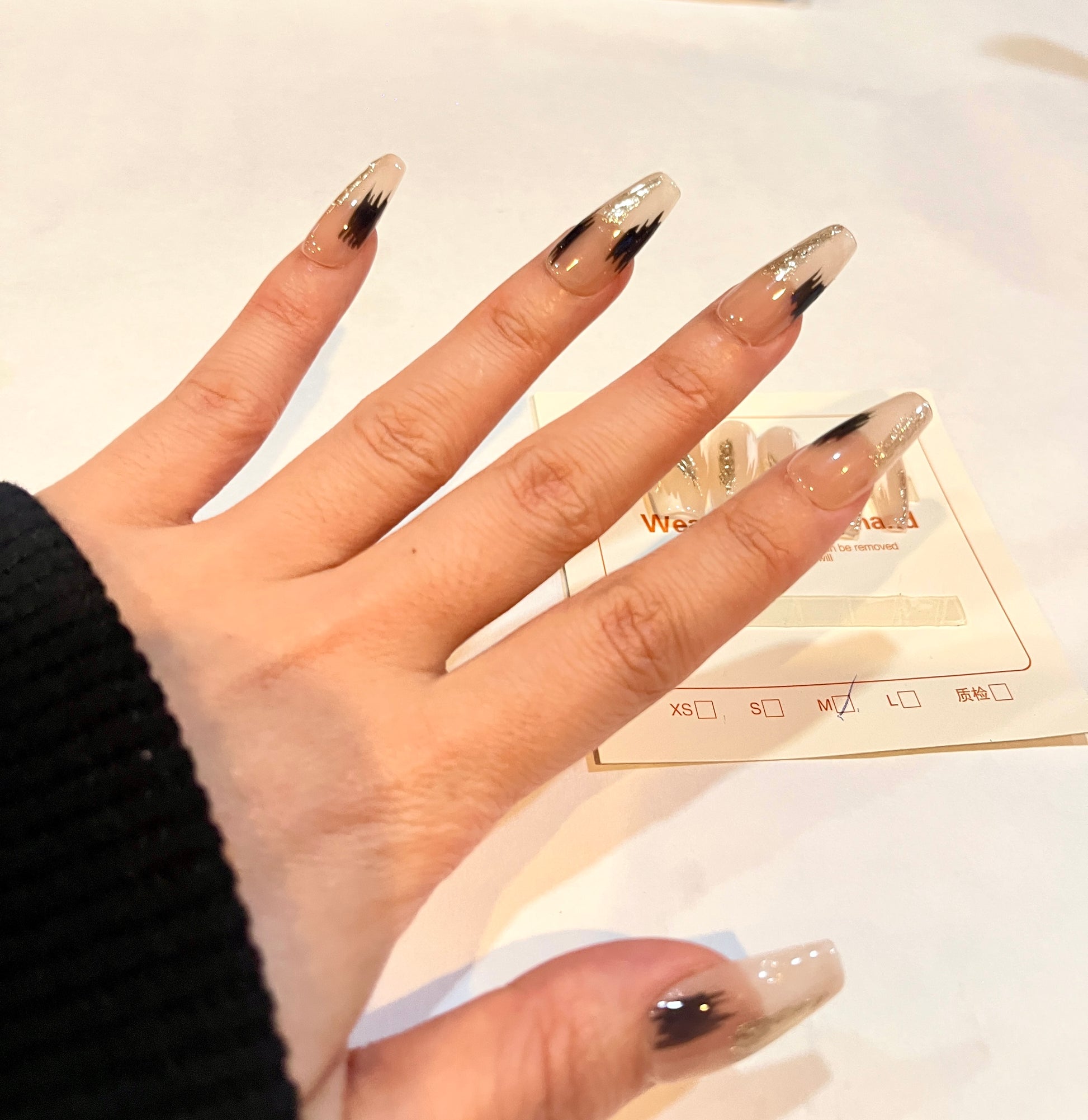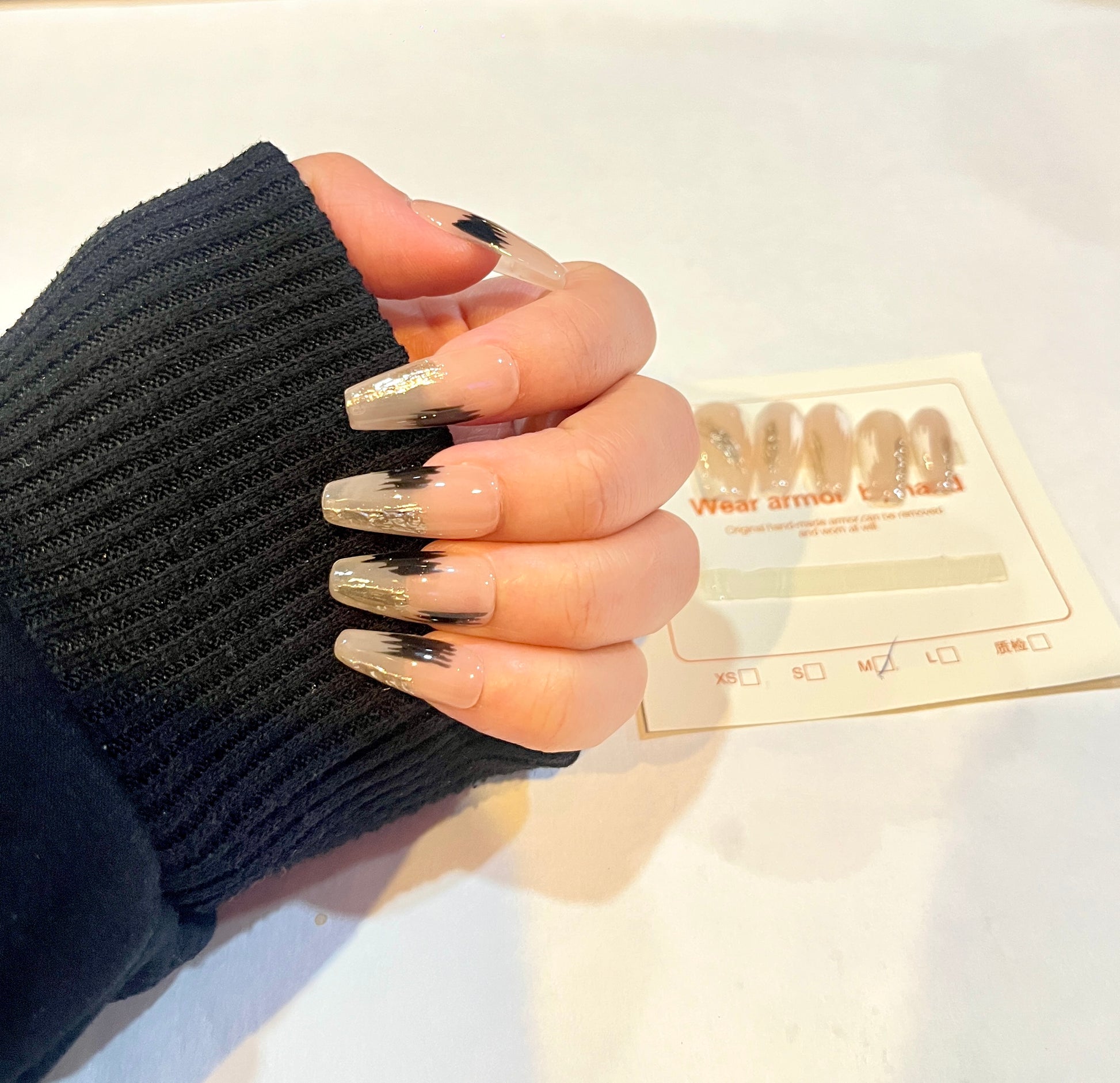 Gold Foil & Black Flame Press-On Nails – Medium Size
