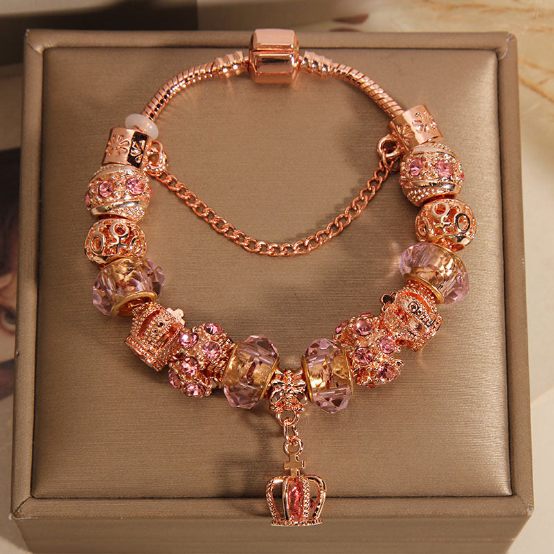 Rose Gold Crown Charm Bracelet – Regal Elegance