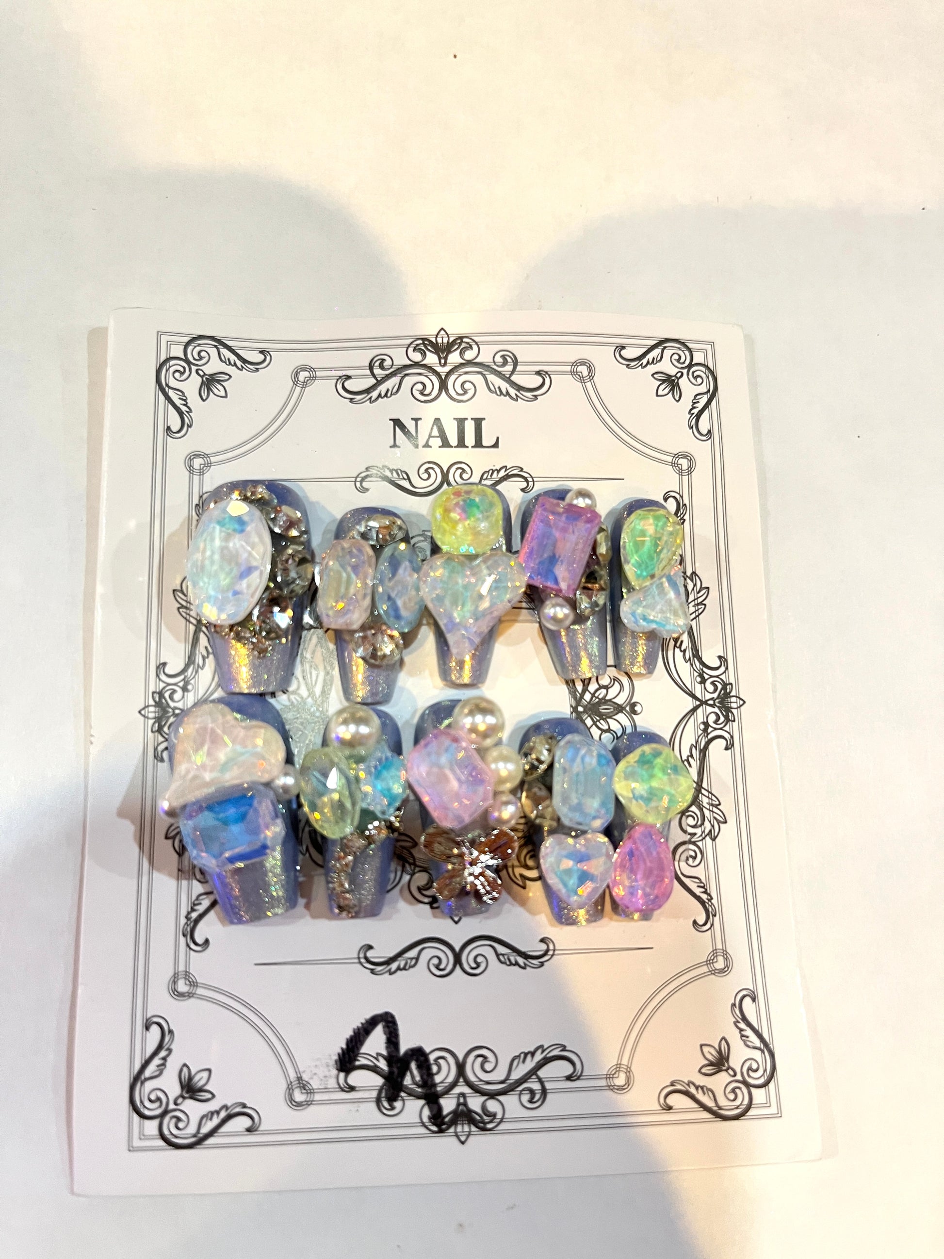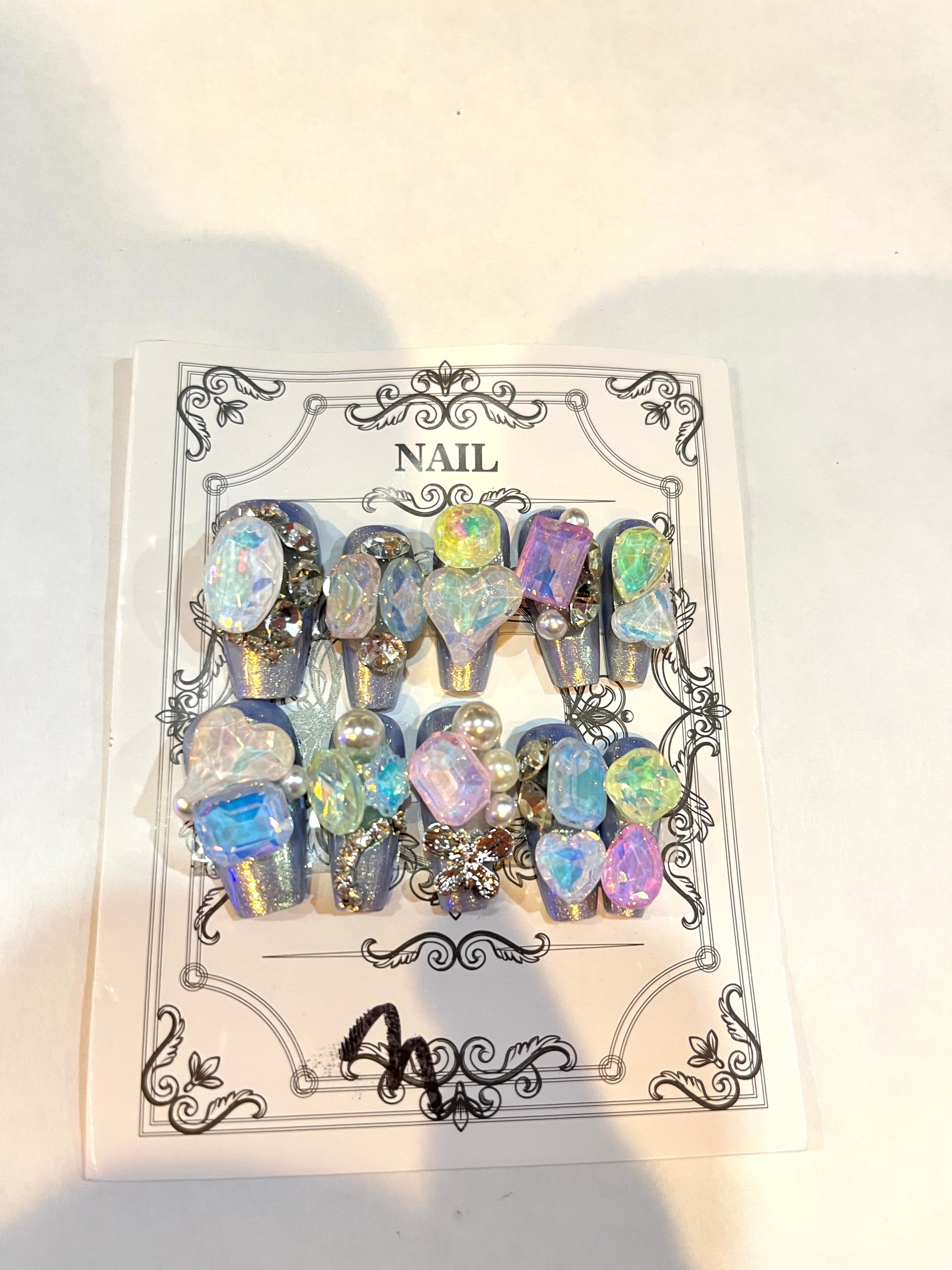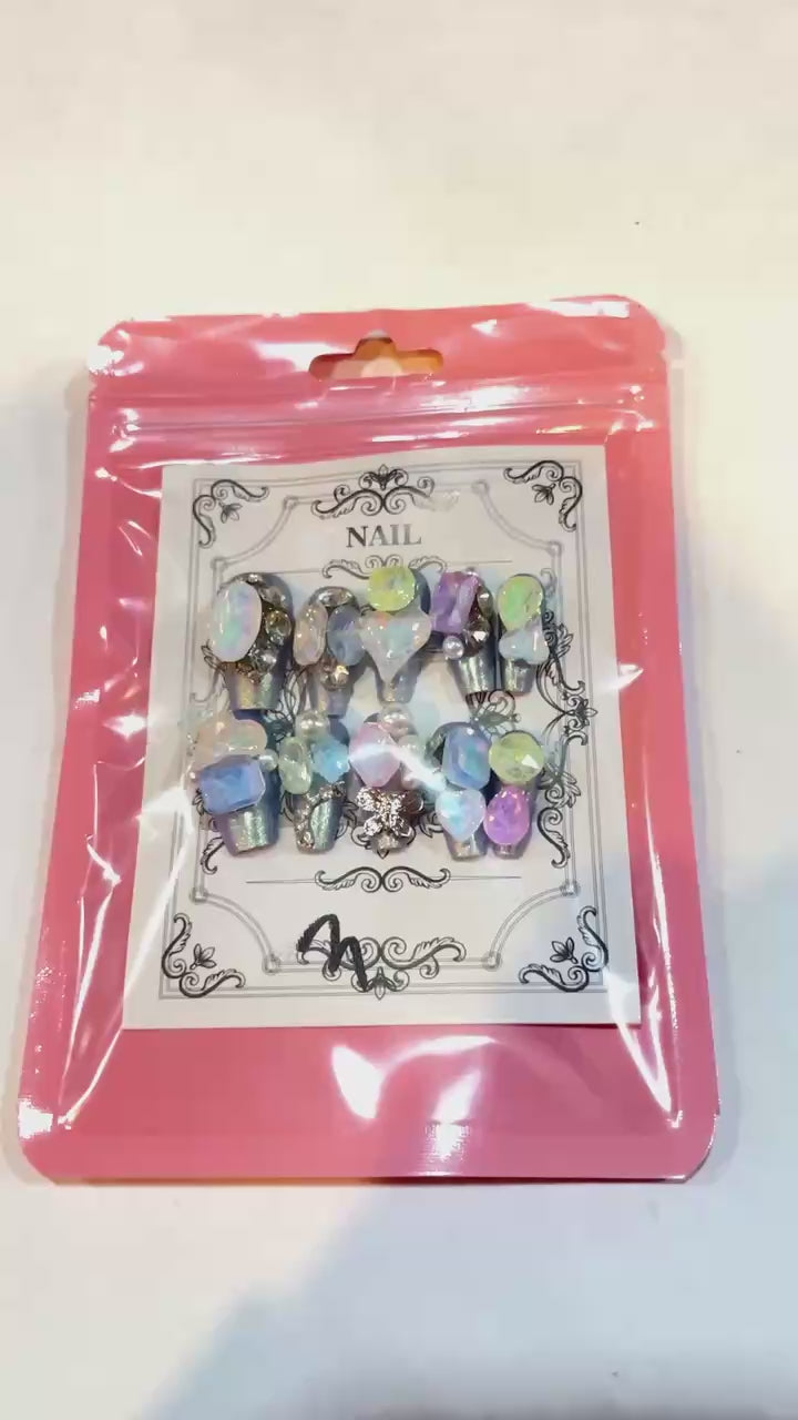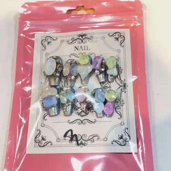 Galaxy Opal Press-On Nails – Iridescent Crystal & Pearl Set