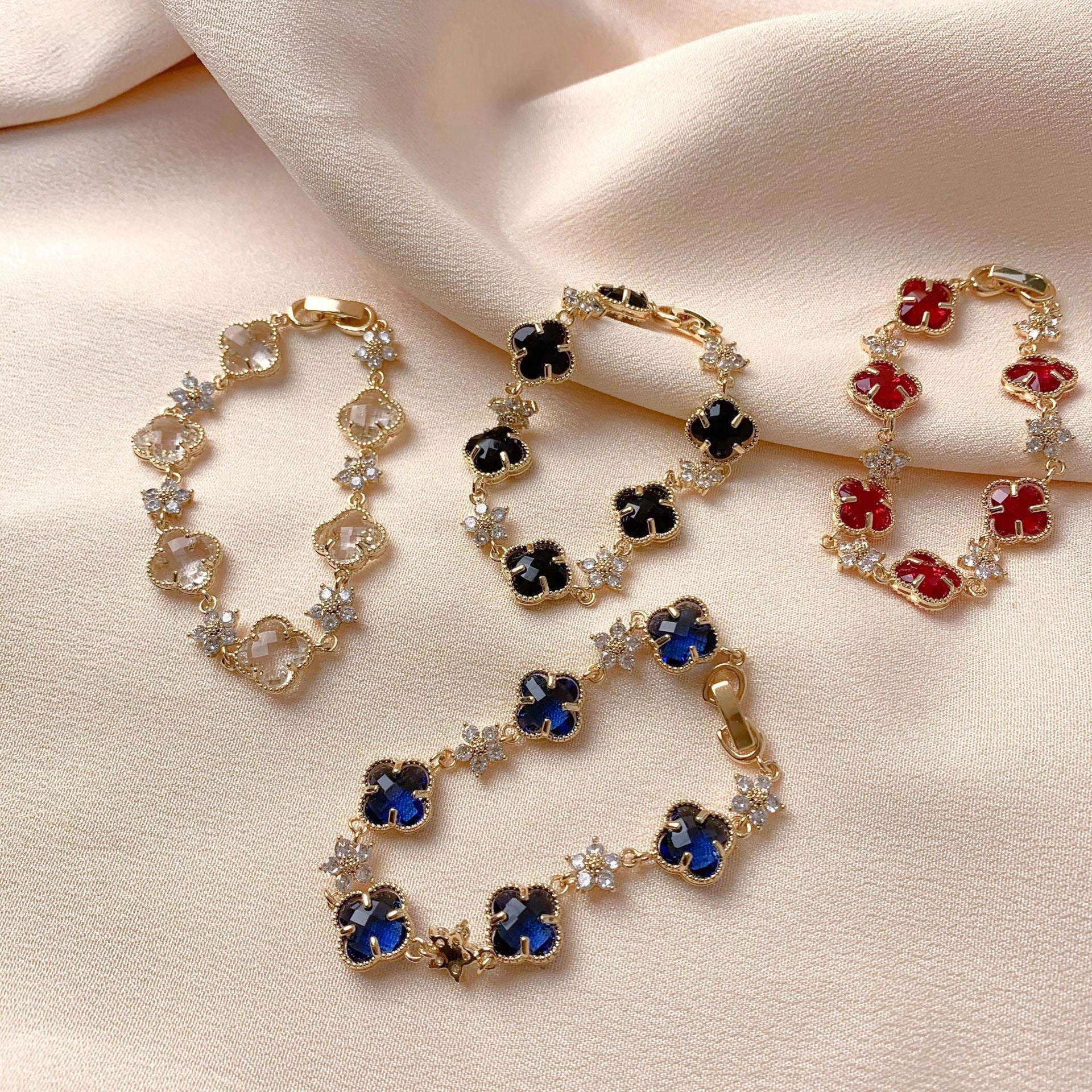 Elegant Clover Crystal Bracelet – 4 Colors Available